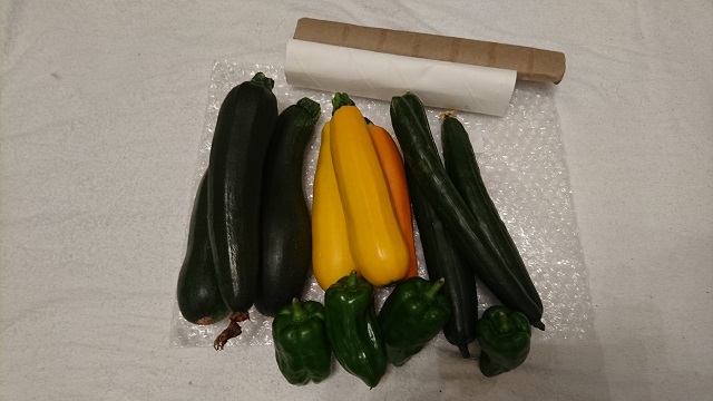 どれも、新鮮、テカテカ、重い。スーパーで売っている野菜とはちょっと違った個性的な野菜達。箱の中は、プチプチは勿論なんですが、写真上、紙の芯(ペーパーホルダー等の)が、隙間に入っていました。友人の野菜に対する思いが伝わってきて、紙の芯にも参加してもらって、写真撮影。大事に美味しく頂きます。