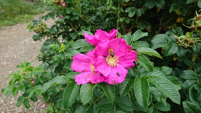 綺麗な花ですね。でも注目して頂きたいのは、花びら中央の蜂。