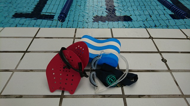 木曜日は早朝から朝練があります。はい、どこまでも元気です。。 写真は左から、パドル、プルブイ、ゴーグル等、いつも使っている物達。お世話になっています。かなりの距離を泳ぐのですが、私はいつも一番後ろ。若い方達の後ろを必死についていきます。今日は少しキツクて、かなりキツクて、それでも泳ぎ切って、、終わった後に、誰もいないプールで小物達の記念撮影。パドルに掛かっている黒いゴムは、プル練習の時に足首に巻く物。仲間がくれました。いつもギリギリで なかなか巻く余裕がないのですが、大事なお守りです。