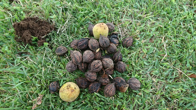 じゃん、クルミの種です。今朝の戦利品です。(あっ、横にモグラの後有り。)