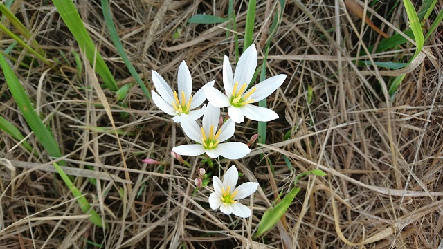 ゼフィランサス、玉スダレの別名だそうです。土手の急斜面に咲いていました。