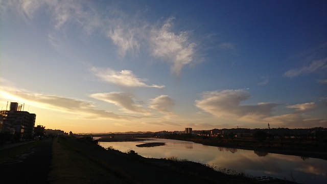 この冬、初めてかと思います。今朝、夜明け少し前の写真です。川に白い湯気のようなものが上がっているのがお分かりでしょうか。何とも幻想的です。特に空気が冷たい朝などに発生します。空気より川の水面の温度の方が高い時に 起こる現象だそうです。多摩川の冬の朝の楽しみの一つでもあります。ところで、以前に介護ベッドの方とのお話をした事があったと思いますが、今朝久々に、本当に久々にブラインドが上がっていて、遠くから手を振り合いました。お互い、最初は右手で、足りなくて左手も足して、もっと足りなくて両手を高く上げて振りあって、私もジャンプして、、良い朝でした。