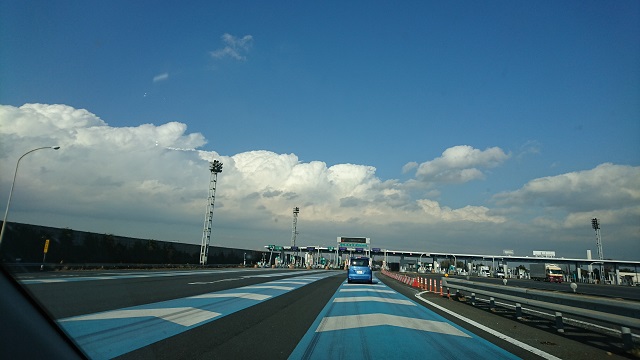 見て頂きたいのは、誘導の線ではなくて 青い車でもなくて、デンデラ デンデラ白い雲です。都内を走っている時は上の青空だけだったのに、急に入道雲を思わせるような白い雲が見えてきました。入道雲と違うのは下の方がドンヨリと暗くなっていること。三郷を抜けると、ドンヨリ雲の割合がどんどん増えていって、走る程 覆いかぶさってきました。常磐道は平野を走る為、空が結構モノを言って、、日中は雲を、夜間は月や星を楽しみます。今日は途中雨も降ってきました。水戸に着いてからの雲がこれまた凄くて、、スミマセン、眠くなってきたので、以下明日です。