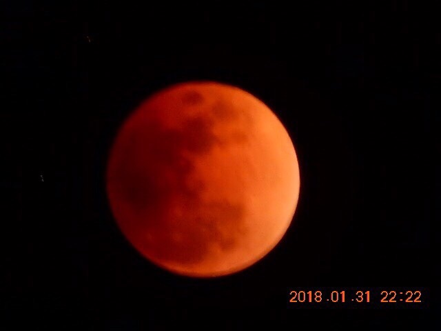ご主人が普通のデジカメで撮ったそうです。すごい、きれい。。わたしも、同時間帯、書き込みをしながら、何度か写真を撮りに行ったのですが、スマホでは昨日のような写真がせいぜいでした。河口湖の澄んだ空気のせいか、動かないように椅子にカメラを固定した という技のせいか、、見事な赤い月が撮れました。ご主人、私達と同年代なのですが、雪山登山をしたり、沢登りをしたり、とてもアクティブで自然を楽しんでいます。昨年秋頃の事、奥さんに「お天気いいから、ちょっと富士山登ってくる」と言って、一合目から登って夜に帰って来たそうです。すごいなあ、こちらもすごい。 にしても、昨日のお月様、多くの方が見入ったでしょうね。あっ、照れて赤くなったとか、、ないない。スンマセン、、復活。