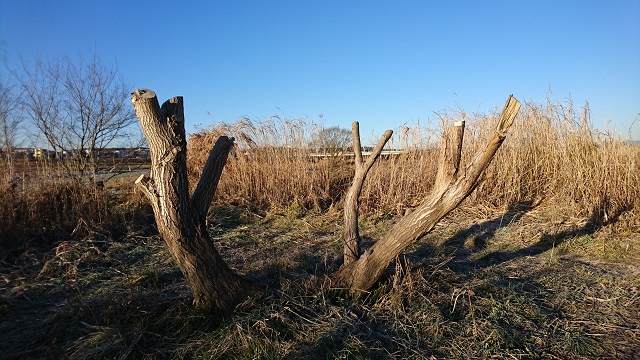 朝、犬を連れて多摩川に行ったら、クルミの木が切られていました。