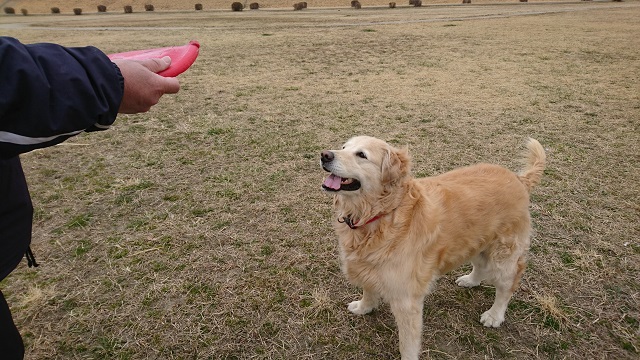 見て欲しいのは、この犬の表情。小山が投げようとするディスク(フリスビー)をシッカと見ています。かなりの時間このまま。シッポ以外、体も頭も動きません。頭の角度もこのまま。耳も目もこのまま。ベロに至っては、口の中に入れるのでも出すのでもなく、緊張が感じられます。あっ、呼吸をしているだけかも、、スミマセン。飼い主には分かるのですが、いつでも動き出せるように手足にしっかりと力が入っています。お腹も気のせいではなく引っ込んでいます。肥満犬でも、フリスビーが得意なのです。一回毎、必ず休憩が入りますが、、。いい顔してます、なずなさん。詳しくは、後日ブログで。。