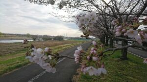 左側が多摩川。犬が川に行ってもいいか、こちらを見ています。