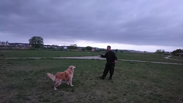 週末、三にんで多摩川に行きました。時間は夕方の6時少し前、夕暮れ時。