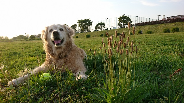 低い草の多い中で、少し長身の草、オオバコです。スックと束になって起立していて、遠くからでも目に入ります。以前にもオオバコは投稿したことがあるかも。小学校の時、オオバコが分からなくて、宿題に躓いた苦い思い出があります。以来、春になってこの草に出くわすと「あっ、オオバコだ。ども、オオバコだ。」と 名前を連呼します。負けず嫌いです。さて、この草を撮ろうとしていたら、愛犬がボールを咥えてきて、横に並びました。「なずさん、邪魔だよぉ。」と言っても一向に動く気配なし。そう、このなずなさん、犬ブログで写真慣れしているというか、スマホを向けるとカメラ目線になるのです。多分、気のせいではないと。この写真も作った笑顔です。カーシャンはだまされましぇん。