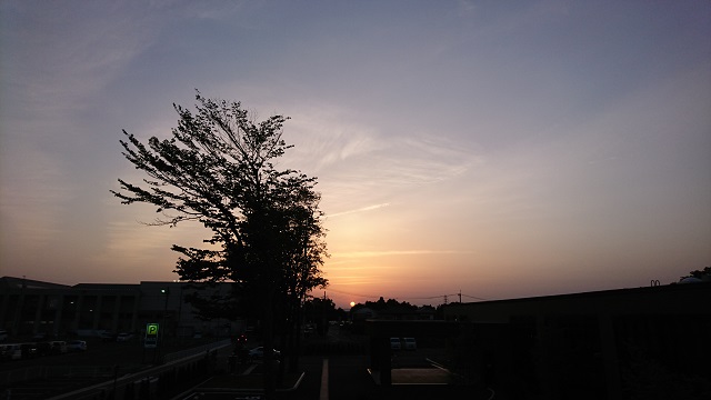 一昨日、義父の新しい「部屋」から見えた夕日です。中央少し下、太陽が沈みかかっています。