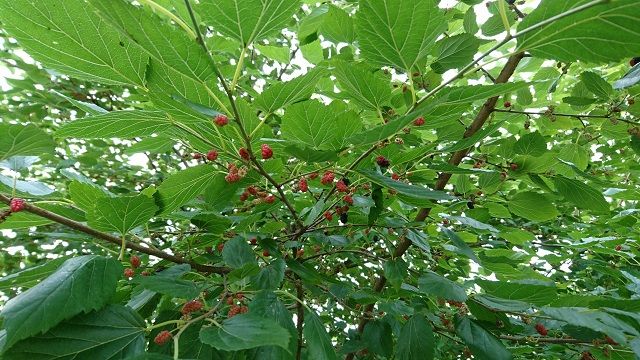 大きな木です。中央左も右も、桑の木です。