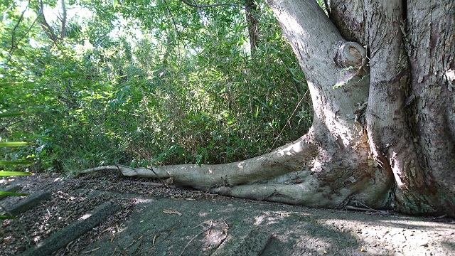 稲城大橋を渡って、川﨑側の多摩川の土手下に降りて、下流に向かって走り出すと、会う事ができます。固いコンクリートの上に根っこが左右に張っていて、開脚していると言うか、スプリットしていると言うか、、見事です。