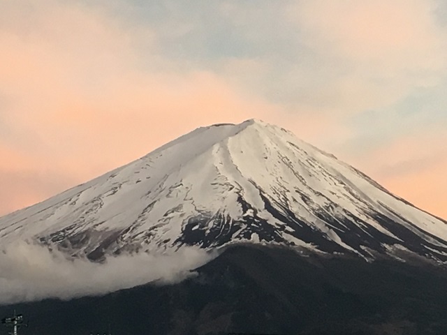 この日の富士山は、優しい丹色をバックに、実に清々しい。大きな自然に抱かれて、富士山に寄り掛かって暫しの休憩。そんな時も大事かと。
