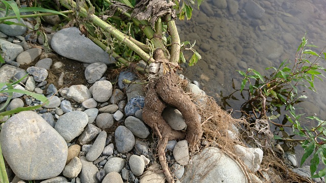 そう、お尻です。この間の日曜日、堰の下で見つけました。木とか枝ではなく、大きな草の根っこです。楽しくなって、思わず撮った一枚ですが、UPして良いものかどうか、、。友人に相談したら「ヒップアップしてる」とか「家に持ち帰って植えたら、草の恩返しがある」とか「ウンが付く」とか、最後は言ったかどうか分かりませんが、背中を押して頂いて載せることにしました。閲覧注意とか、もし規制が掛かったら、友人のせいにします。 多摩川は、雨の後は、草等が根っこ付きで、よく流れてきます。このお尻、もとい根っこも 茎や葉っぱの痛み具合から、遠くから流れてきたものではないかと。乾いていて可哀想あったので 水に漬けてきたのですが、今度行った時、成長していたらどうしようか、と。。