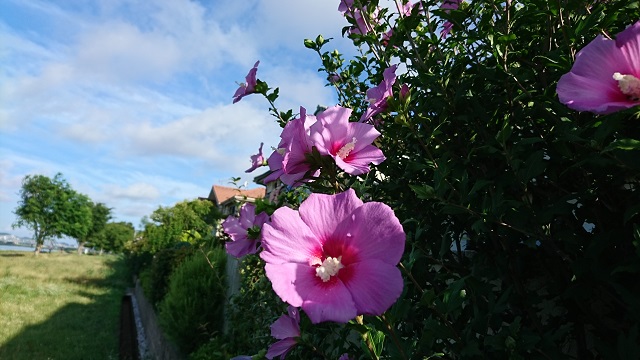 先週始め、多摩川の土手沿いに咲いていました。ムクゲです。