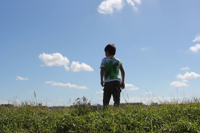 大地と空の元、その小さな背中に、大きな力、逞しさをを感じます。