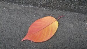今朝の落ち葉は、紅葉です。 昨日の雨で少し傷んだ紅葉が、散歩道に落ちています。