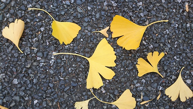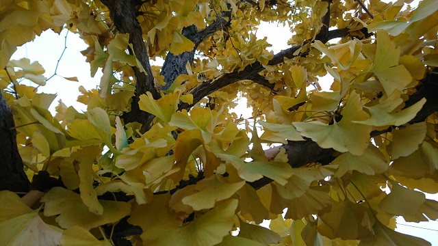 まだ少し緑色を残した葉たちが、枝にびっしりと付いています。
