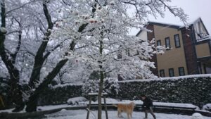 じゃん、天気予報どおり 雪が降りました。それも大雪です。 事務所横の公園、保育園から帰ってきた孫と犬が、雪の中、楽しそうに遊んでいます。上を見れば、樹の枝に雪が乗って、それこそ満開の桜が咲いているよう。この写真を撮ったの […]