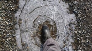 犬の散歩に行こうとしたら、道端の水溜まりが凍っていました。 大きな鏡のような氷の真ん中に、足を乗せて踏み付けたら、ミシッと音がして 円を描くように割れました。中央部分は水が残っていて、薄氷だったんだな、と。綺麗に気持ちよ […]